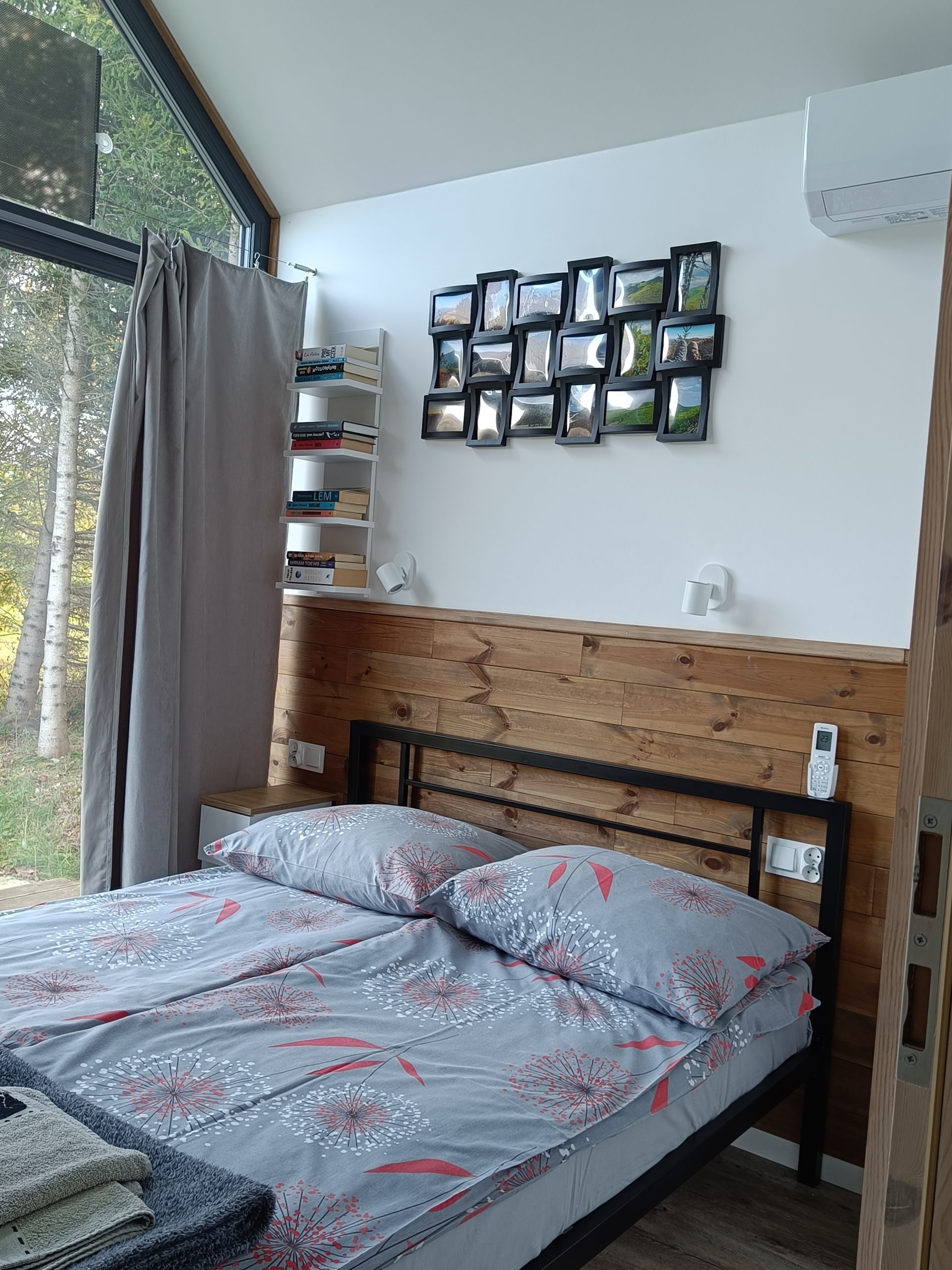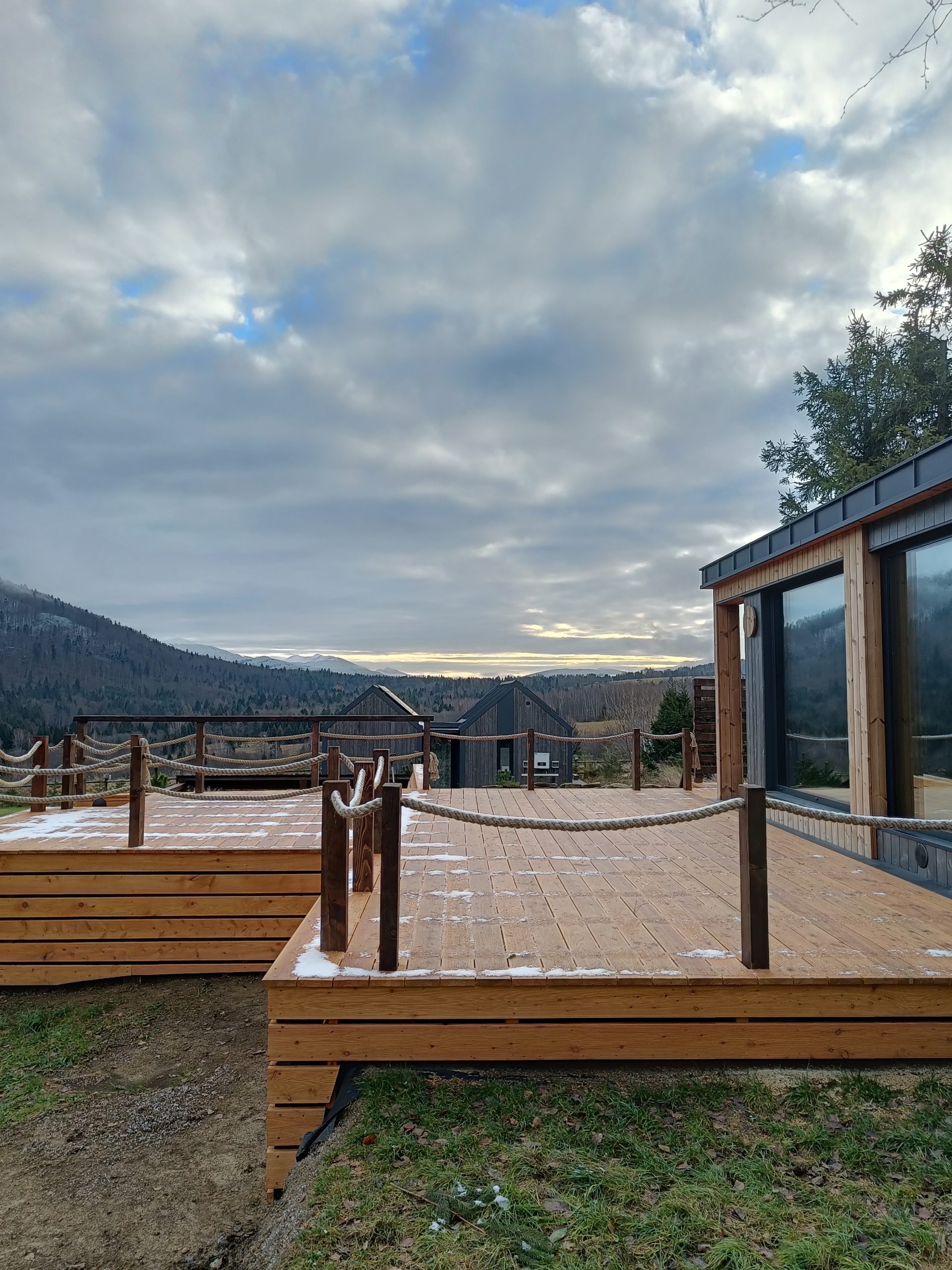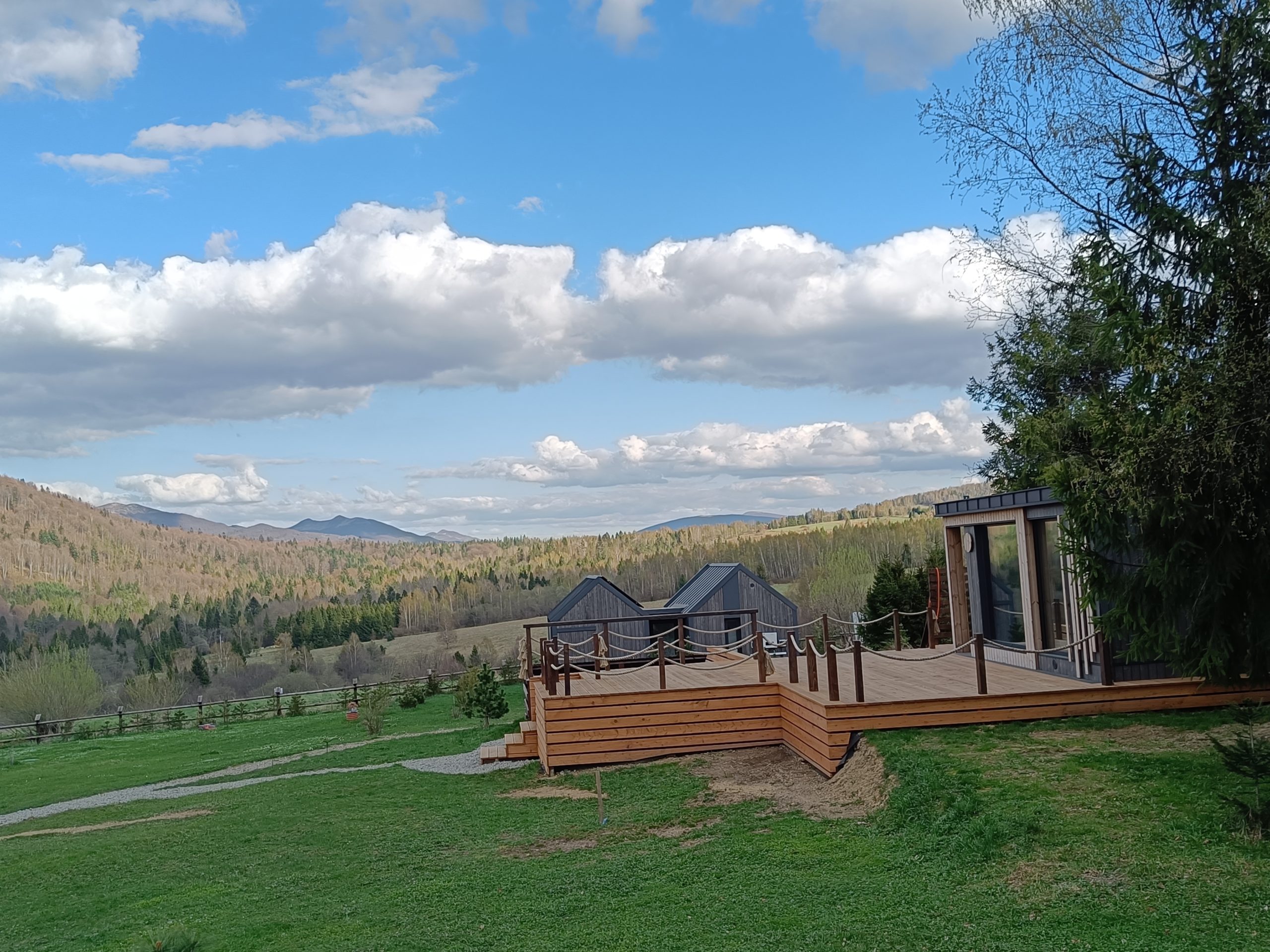 Z przyjemnością prezentujemy Państwu nasze trzy całoroczne Domki Pod Gwiazdami, zaprojektowane w oryginalnym stylu w systemie modułowym. Domki posiadają min. dwie 2 -osobowe sypialnie (możemy gościć max 4 osoby ), salon z aneksem kuchennym i łazienką. Niewątpliwą zaletą naszych Domków Pod Gwiazdami są duże, drewniane tarasy (35 m²) oraz ogromne oszklenia (witryny). Można zwiedzać Bieszczady nie wychodząc albo tylko dosłownie za próg… i podziwiać, podziwiać, podziwiać… Zadzierać nocą głowę wpatrując się w tysiące gwiazd, wypowiadając życzenia w chwili kiedy spadają 🙂 Warunki do takich astronomicznych „podróży” mamy wprost idealne. Brak zanieczyszczenia sztucznym światłem pozwala na dosięgnięcie wzrokiem, przy wsparciu sprzętu, jeśli takowy posiadacie nawet tysięcy gwiazd i obiektów. W naszej „małej galaktyce” znajdziecie wszystko co niezbędne: lodówkę garnki, sztućce, talerze, kubki, szkło itp, płytę grzewczą ceramiczną, ekspres do kawy, czajnik elektryczny, odkurzacz, żelazko, suszarkę do włosów, pościel i ręczniki, klimatyzację, wieżę CD, wi-fi.